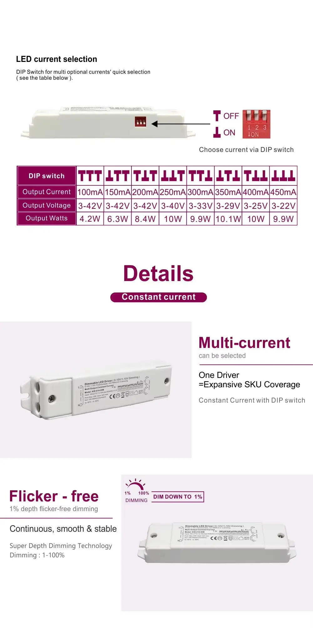 Driver de LED regulável de corrente constante Starwell 0/1-10V