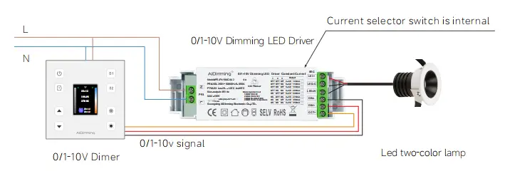 1. Quando o dimmer de 0/10 V é ajustado para o máximo de 10 V, a corrente de saída atingirá 100% da potência de saída e o brilho atingirá 100%. Quando o dimmer 0-10V é ajustado para 0V, a corrente será a