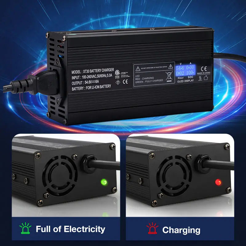 Carregamento versátil: Compatível com vários veículos elétricos, incluindo scooters, bicicletas elétricas e aplicações profissionais e industriais.