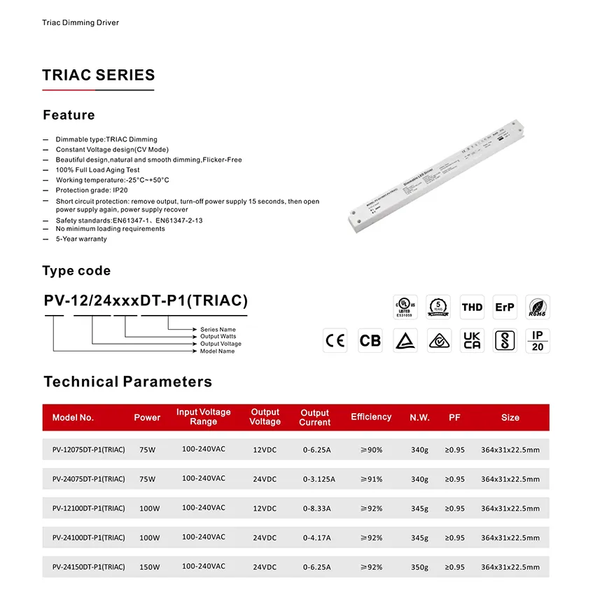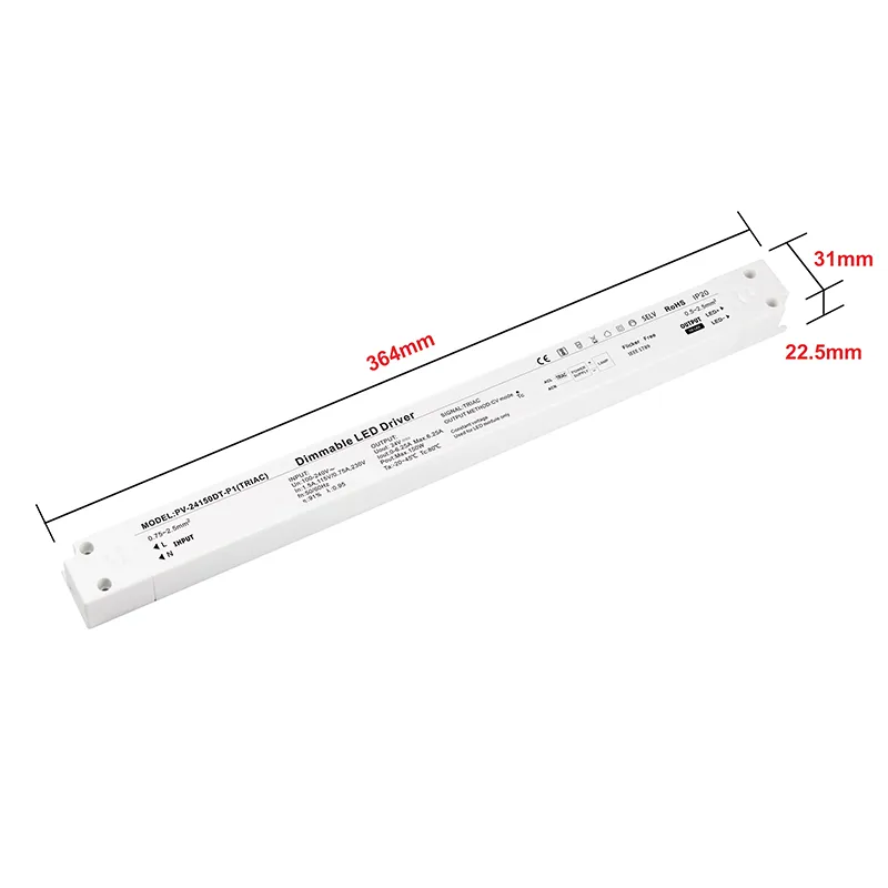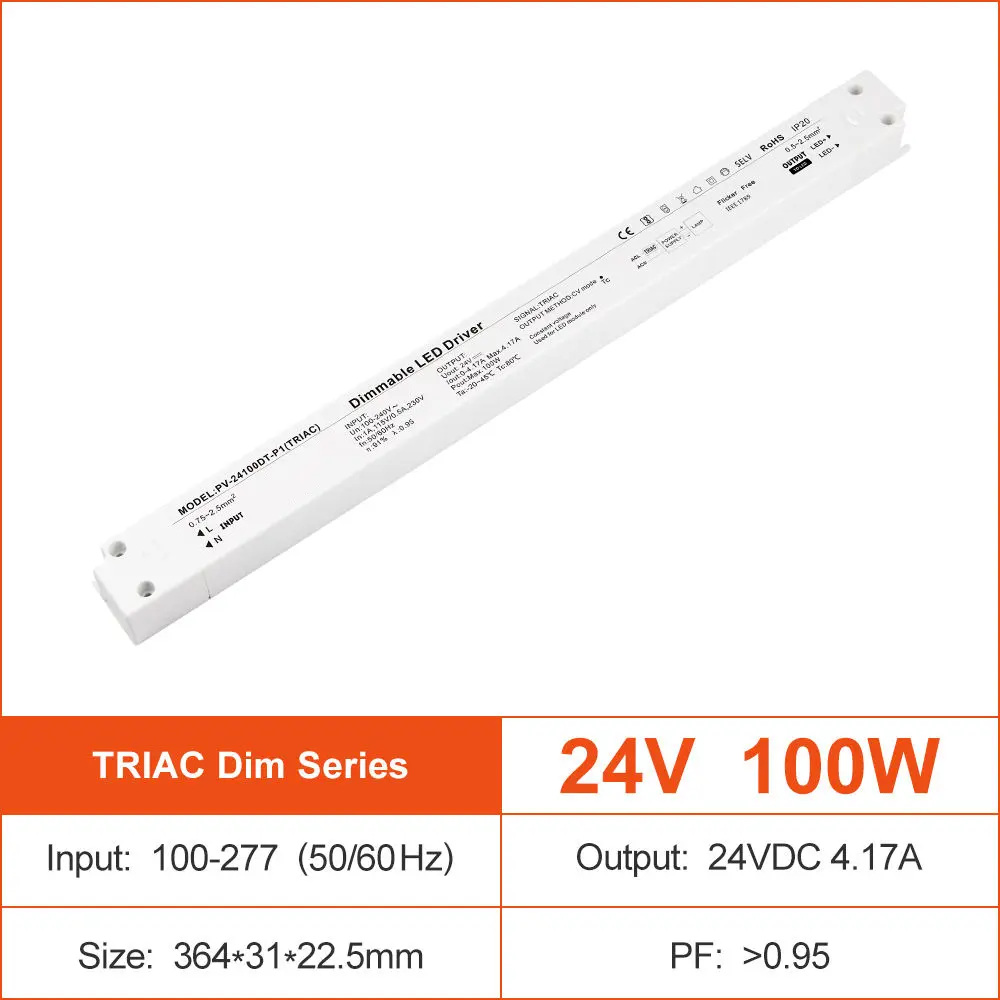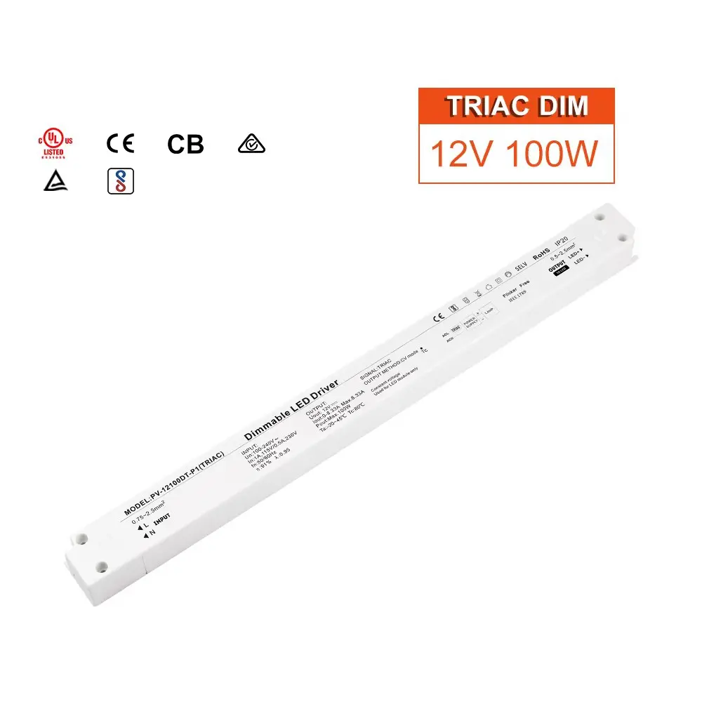 Desempenho avançado para aplicações exigentes Este driver de LED regulável de 24 V é construído de acordo com especificações técnicas. Possui entrada AC universal (100-250V), garantindo compatibilidade com redes elétricas em todo o mundo. Com alta eficiência de até 90% e correção do fator de potência (PFC) frequentemente superior a 0,95, minimiza o desperdício de energia e reduz a carga no seu sistema elétrico. O núcleo da sua funcionalidade é a avançada tecnologia de dimerização TRIAC (corte de fase), que permite uma dimerização suave e sem cintilação de 0% a 100% quando combinada com dimmers de parede padrão, permitindo a criação de um ambiente perfeito. Para durabilidade em vários ambientes, ele é oferecido em gabinetes que variam desde o padrão IP20 até o robusto invólucro de alumínio com classificação IP67, protegendo contra poeira e umidade para uso interno e externo.