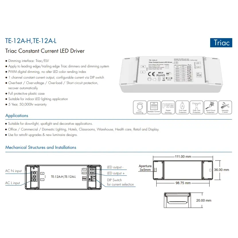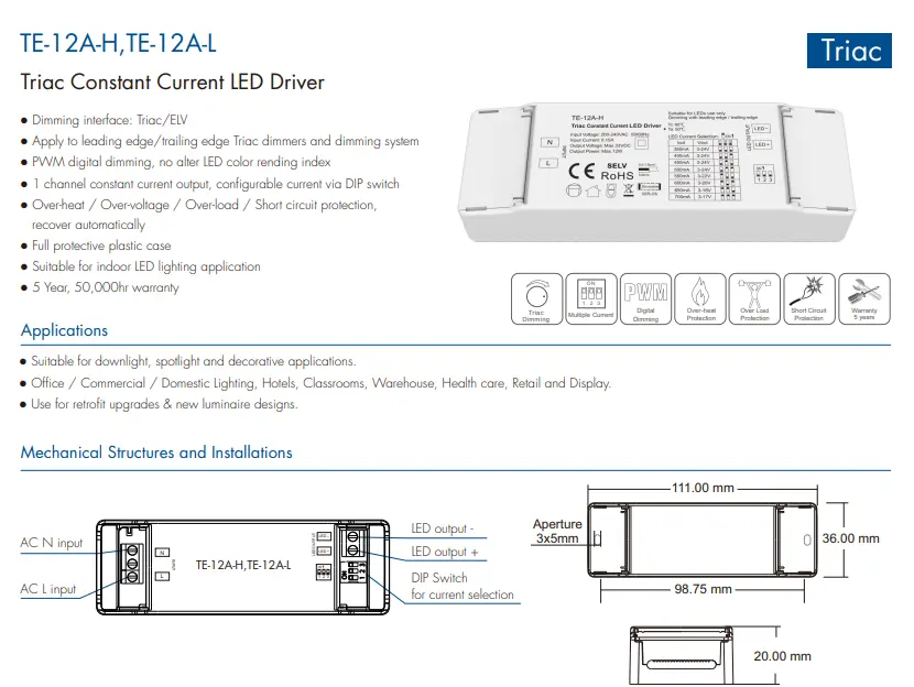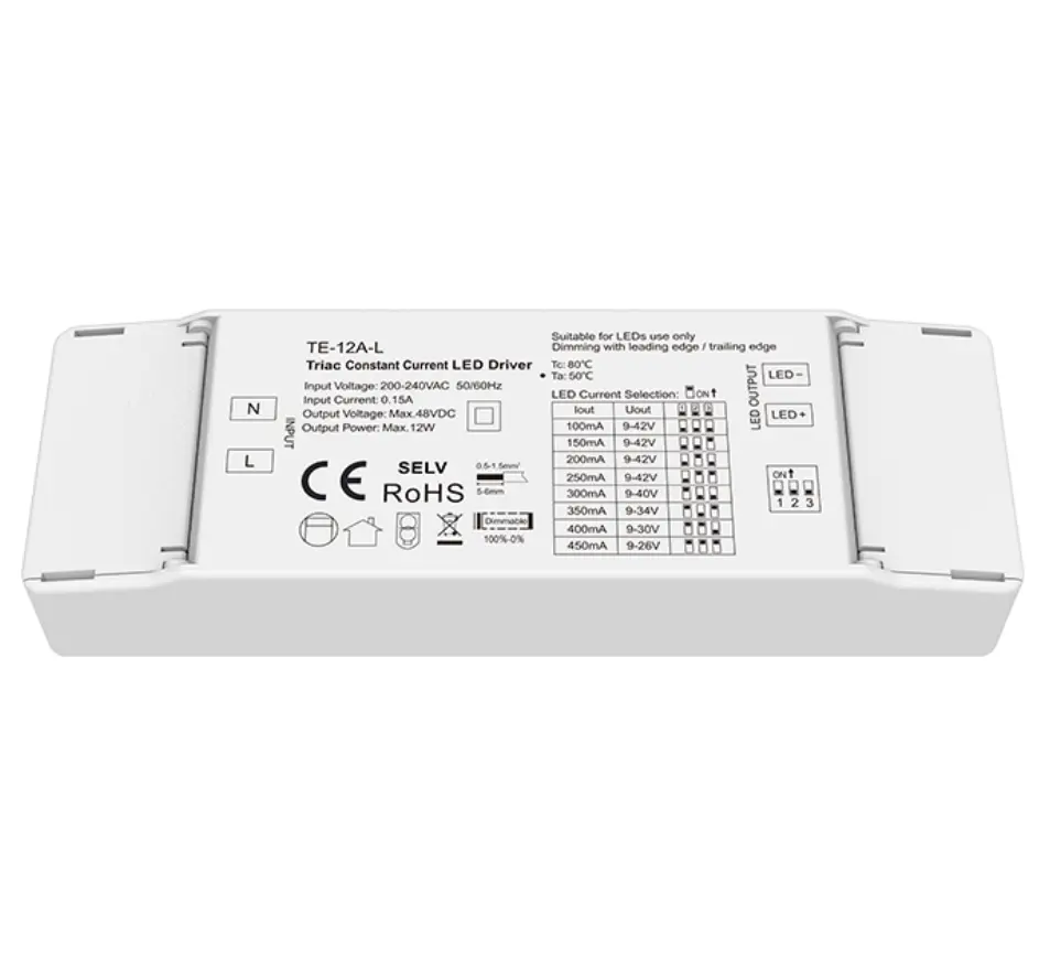 O driver LED de escurecimento triac de corrente constante de 12 W de alta qualidade Starwell integra funções de proteção contra sobretensão, sobrecorrente e curto-circuito e apresenta alto fator de potência e baixa distorção harmônica, atendendo a vários padrões internacionais de eficiência energética e segurança. Seu design compacto facilita a instalação e é adequado para vários cenários de iluminação interna, como downlights, holofotes e luzes decorativas, tornando-o uma solução de driver ideal para renovações com economia de energia e aplicações de iluminação inteligente. ProdutoCaracterísticas: