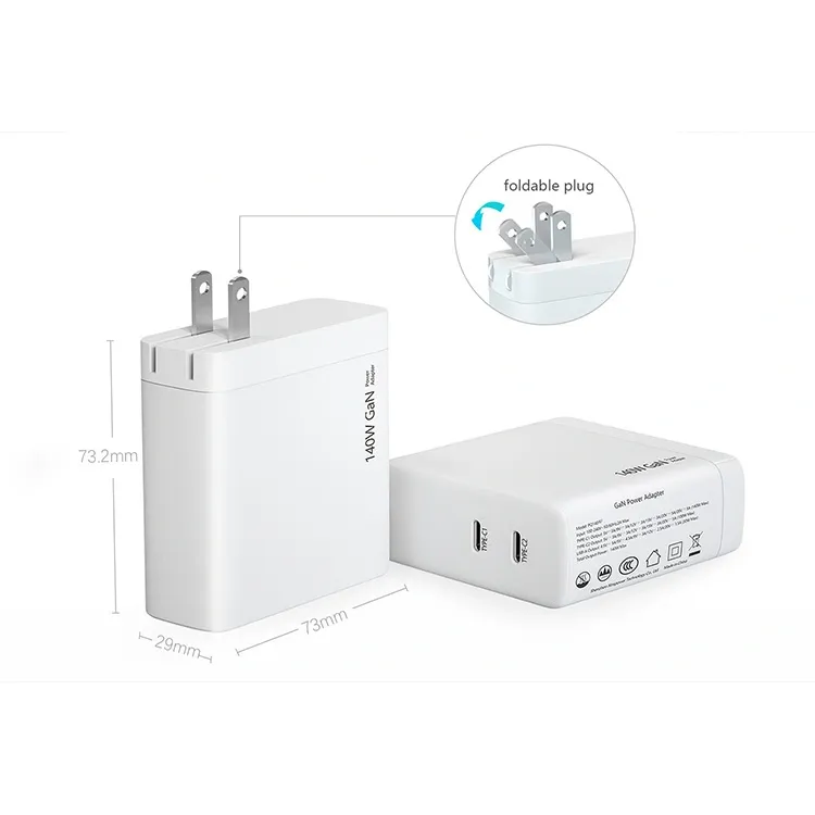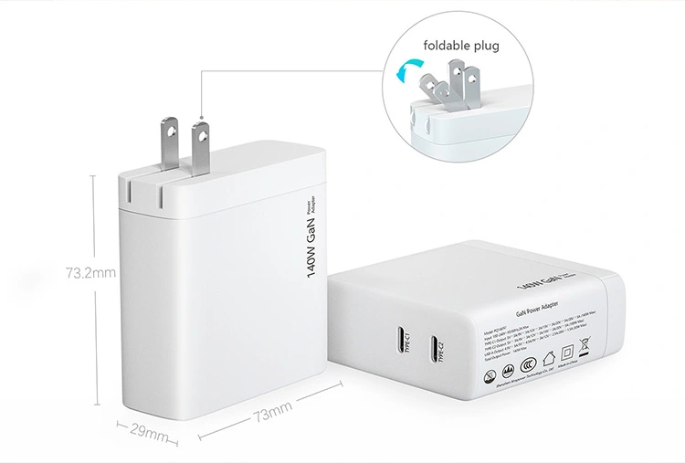 Carregador PD de porta dupla usb c de 140 W com plugue dobrável Especificação: