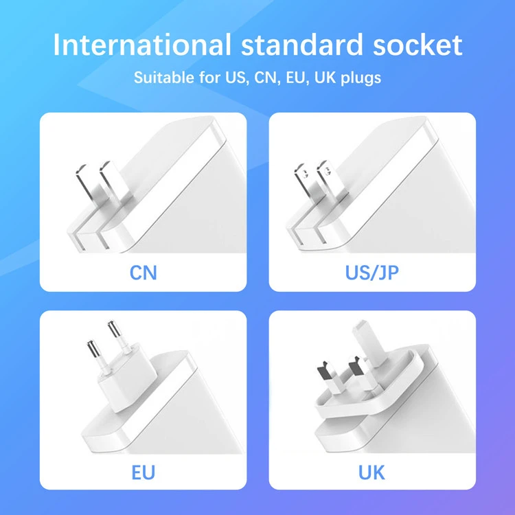 GAN: Com chips GaN, o tamanho do carregador PD de 140 W é reduzido em 50% em comparação com os carregadores tradicionais, tornando-o fácil de transportar para viagens de negócios ou uso no escritório, sem ocupar espaço na tomada de energia.