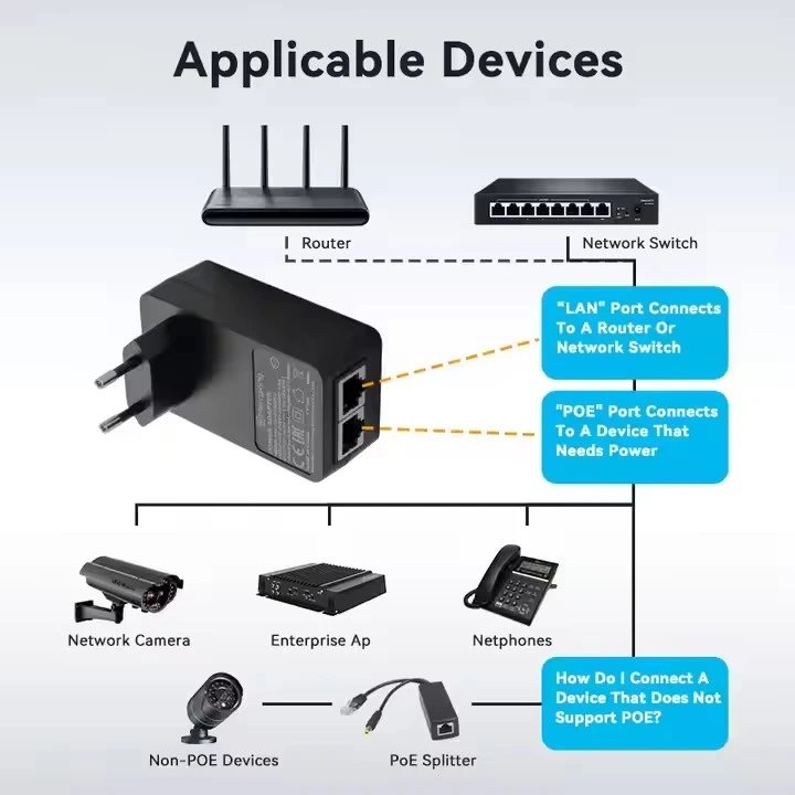 STARWELL é um renomado e profissional fabricante de adaptador POE universal 12V 24V 48V com sede na China. Construímos nossa reputação produzindo produtos de alta qualidade a preços razoáveis, atendendo clientes em todo o mundo com soluções de rede confiáveis que combinam inovação com design prático. Nossos injetores PoE são projetados para suportar uma ampla gama de taxas de transmissão, incluindo 10/100/1000M, 2,5G, 5G e 10G. Esta flexibilidade excepcional permite a integração perfeita com diversos dispositivos Ethernet, desde equipamentos legados até aplicações de alta largura de banda, garantindo o fornecimento confiável de energia e a transmissão ininterrupta de dados em toda a sua infraestrutura de rede. Os injetores PoE da STARWELL aderem estritamente aos padrões IEEE802.3.af/at/bt PoE++, garantindo ampla compatibilidade com praticamente todos os dispositivos habilitados para PoE no mercado. Essa conformidade permite o fornecimento eficiente de energia e, ao mesmo tempo, oferece suporte a funcionalidades avançadas, como gerenciamento remoto de dispositivos e monitoramento de energia em tempo real, proporcionando aos administradores de rede maior controle sobre suas instalações.