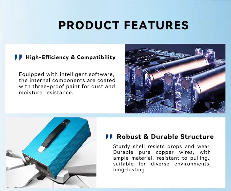 Ele usa uma lógica de carregamento inteligente de quatro estágios: pré-carga, corrente constante, tensão constante e carga flutuante, o que prolonga efetivamente a vida útil da bateria e garante o carregamento completo. Os mecanismos de proteção total integrados incluem proteção contra sobretensão, sobrecorrente, sobretemperatura, curto-circuito e polaridade reversa, aumentando a segurança e a confiabilidade operacionais. O carregador suporta desligamento automático após carga total, liberando os usuários do monitoramento manual.