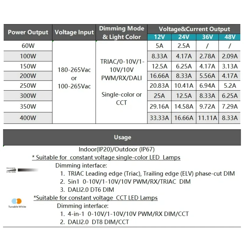 Nosso driver de LED regulável DALI CCT de tensão constante possui 85% de eficiência de conversão em plena carga e PF ≥0,95, com entrada universal 100-240VAC e THD ≤15% em plena carga, além de baixo consumo de energia em espera. Reduz o desperdício de energia em mais de 15% em relação aos drivers padrão, permitindo a implantação global direta.