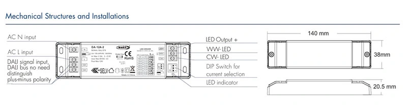 Driver LED de escurecimento DALI CCT de tensão constante 60W