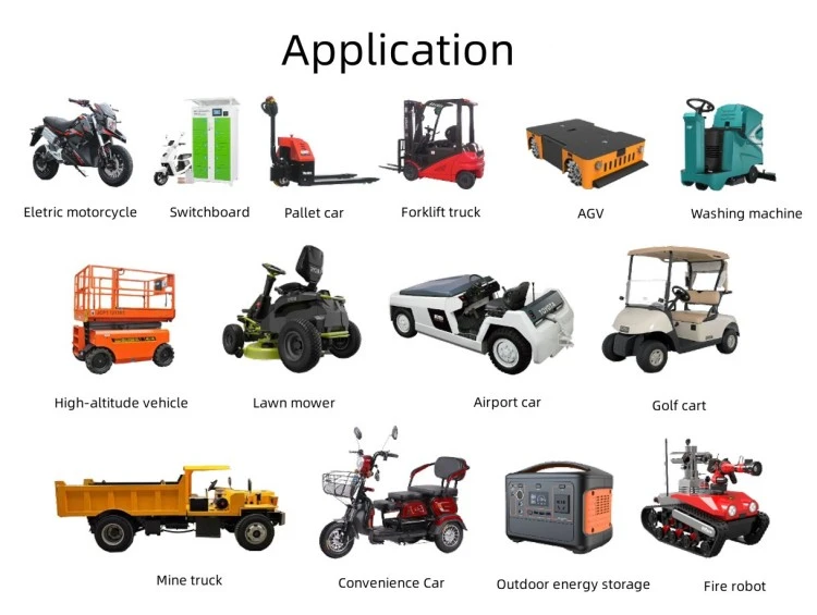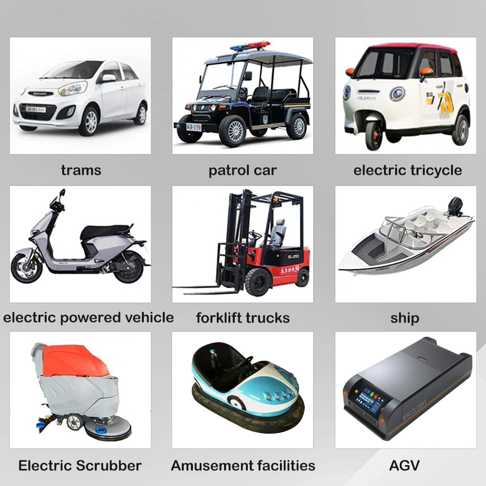 Aplicativos de produtos Carrinhos de choque elétricos e brinquedos de diversão Veículos turísticos e carrinhos de golfe Veículos de patrulha e carrinhos de segurança Empilhadeiras e equipamentos de movimentação de materiais Lavadoras de piso e máquinas de limpeza Veículos guiados automaticamente (AGVs) para armazéns Navios elétricos, barcos e embarcações utilitárias marítimas