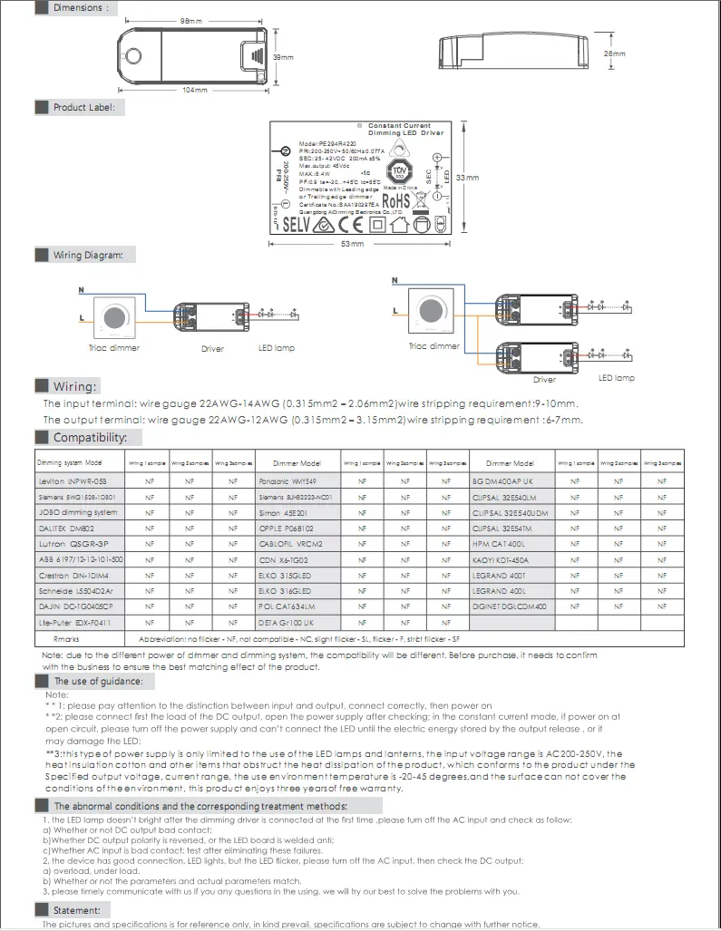 O driver LED de escurecimento triac de corrente constante PE294R 42V máx. 200ma de alta qualidade é um dos mergulhadores LED de escurecimento de corrente constante desenvolvidos pelo fabricante chinês Starwell com alto fator de potência, alta eficiência, alta precisão, o uso do chip de controle de interruptor de baixa perda stoble eficiente e os componentes de alto desempenho o tornam com baixo ruído, longa vida útil e outras características.