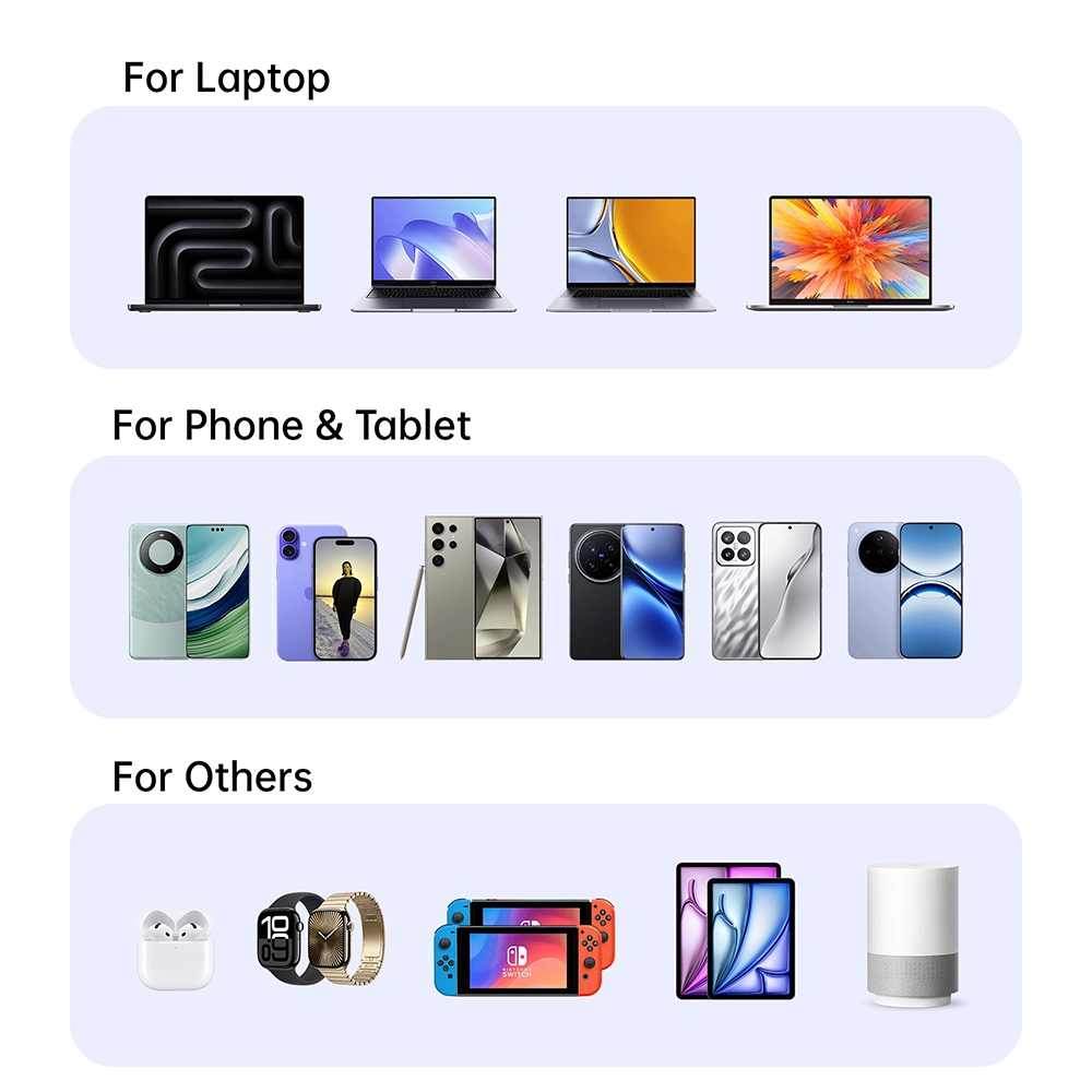 Suporta vários protocolos: Suporta (PD3.0), PPS, APPLE2.4A, Samsung-5V2A, QC3.0/2.0, DCP1.5A, QC4+, AFC, FCP, SCP, VOOC, etc.