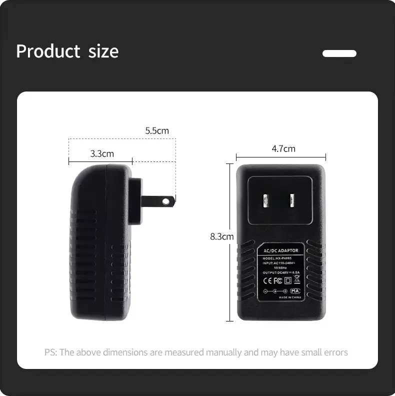 Saída: 48V DC 500mA - Não faça o pedido se sua unidade exigir mais de 500 miliamperes