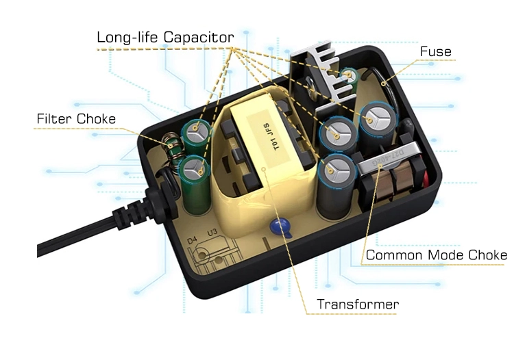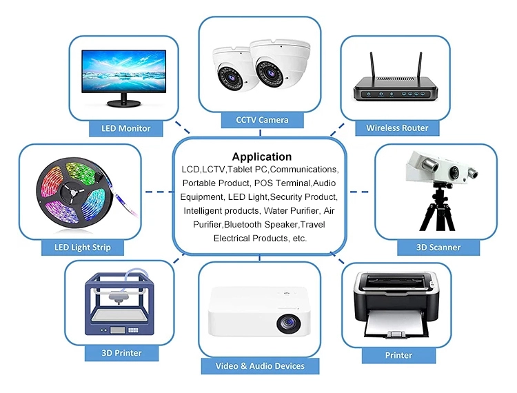 * Mais unidades para a série 48W: 5V/9V/12V/15V/19V/24V/36V/48V disponíveis * Segurança: OCP/OVP/OTP, SCP, corte automático de sobrecarga, corte de sobretensão, corte térmico automático. * Amplas compatibilidades: luzes de tira LED, impressora 3D, transceptor de rádio amador, câmeras CCTV, amplificador de subwoofer para carro, amplificador de áudio, roteador sem fio, ADSL Cats, umidificador, HUB, teclado, alto-falante BT, monitor, webcam, DVR, NVR, fonte de alimentação de áudio/vídeo