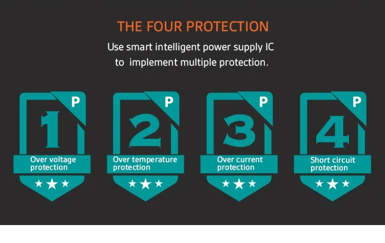Proteção contra sobretemperatura, sobrecarga, sobretensão, sobrecorrente, proteção contra curto-circuito |