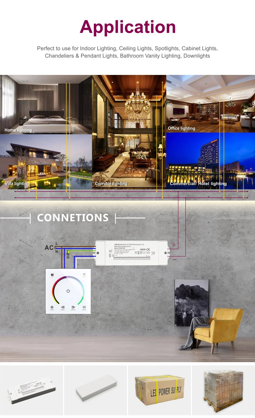 Quer se trate de painéis de iluminação LED em escritórios, downlights LED em centros comerciais, faixas de luz ocultas em corredores de hotéis ou iluminação de realce em espaços domésticos, este driver é a escolha ideal. A carcaça compacta em liga de alumínio com envasamento completo garante excelente gerenciamento de calor e operação estável a longo prazo. Os múltiplos circuitos de proteção integrados para sobretensão, sobrecorrente, curto-circuito e superaquecimento fornecem proteção de segurança abrangente para todo o sistema de iluminação.