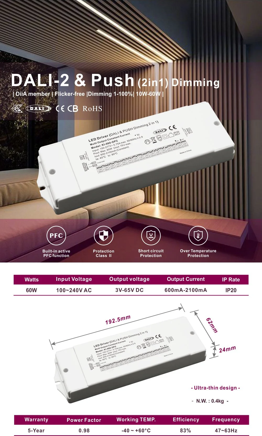 Driver de led CCT de corrente constante dali de 60W com escurecimento |