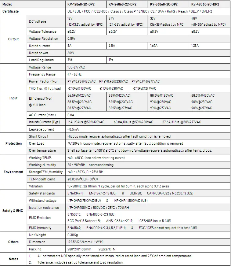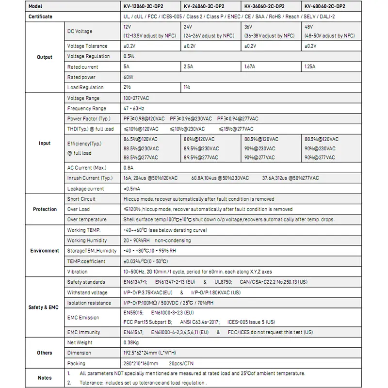 Adotando o escurecimento digital DALI, ele suporta escurecimento suave sem cintilação de 0,1% a 100% e ajuste CCT preciso de 2700K a 6500K, mantendo o brilho consistente durante mudanças de temperatura de cor. O PFC ativo integrado aumenta a eficiência em até 88%, com baixo consumo de energia sem carga. Possui partida suave, sobretensão, sobrecorrente e proteção contra curto-circuito, garantindo uma operação segura.