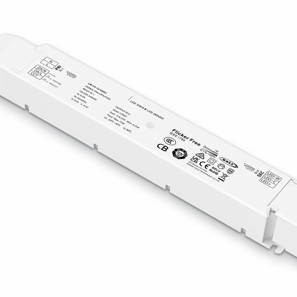 O driver de LED regulável DALI de tensão constante de 75 W 12 V STARWELL de alta qualidade é uma fonte de alimentação de alto desempenho projetada para sistemas de iluminação LED profissionais. Ele oferece saída estável de 12 Vcc com potência máxima de 75 W, garantindo operação confiável para uma ampla gama de aplicações de LED de baixa tensão, incluindo fitas de luz, sinalização e iluminação decorativa. Com compatibilidade de regulação DALI integrada, o driver LED permite um controlo digital preciso e uma integração perfeita em redes de iluminação inteligentes.