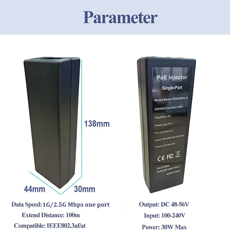 Como fabricante profissional de fontes de alimentação na China, a Starwell apresenta seu injetor PoE Gigabit Ethernet 802.3afat 48V 30W 1000Mbps. Este dispositivo suporta negociação automática de 10/100/1000Mbps/2,5G e possui vários circuitos de proteção contra sobrecorrente, sobretensão e curto-circuitos. Com uma faixa de temperatura operacional de -20°C a 50°C, é adequado para vários dispositivos de rede, como câmeras IP, APs sem fio e telefones VoIP. O produto obteve certificações incluindo CE, FCC e RoHS e vem com garantia de 3 anos.