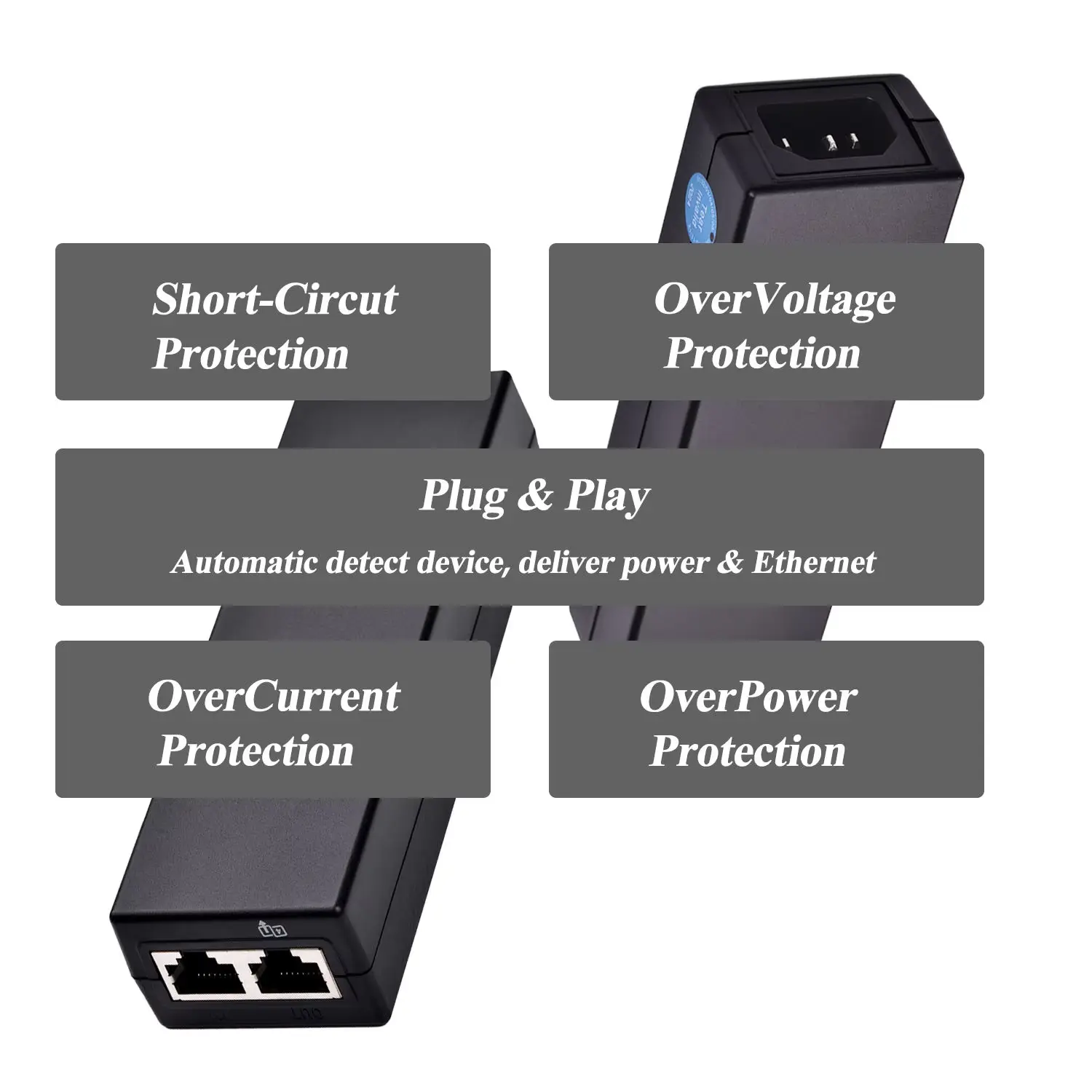 Saída de alta potência: suporta saída de até 30 W, alimentando e conectando com eficiência dispositivos de rede, como câmeras IP, APs sem fio e telefones VoIP.