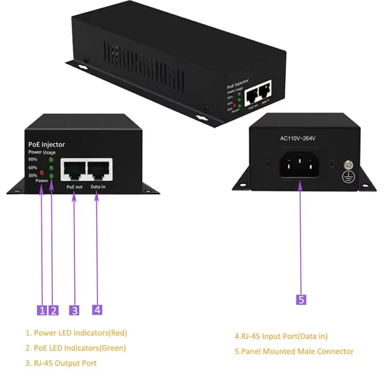 Como fabricante profissional de fontes de alimentação na China, a Starwell lançou um injetor PoE Gigabit IEEE802.3bt com caixa metálica de 90 W que está em total conformidade com o padrão IEEE 802.3bt. Ele suporta uma saída de 52 V, fornece potência máxima de 90 W por porta e é compatível com versões anteriores dos padrões 802.3af/at.