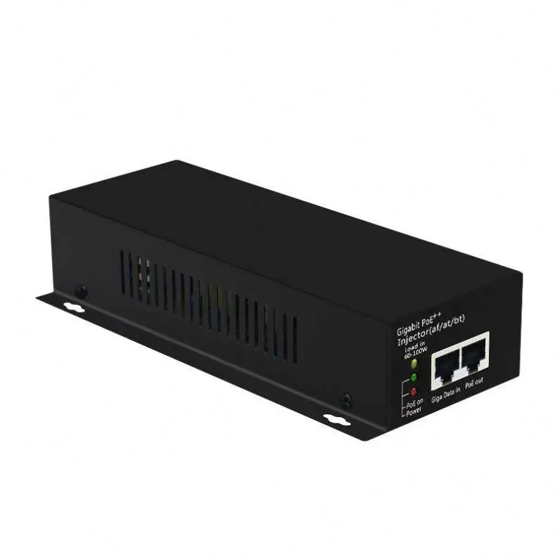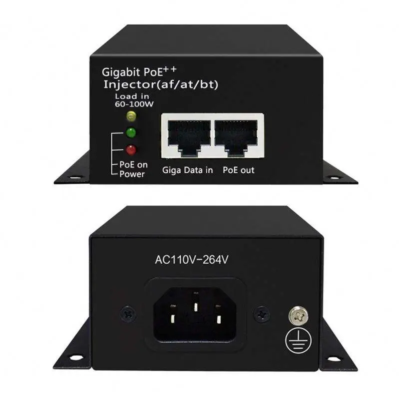 O injetor POE ativo de 60 W de alta qualidade é oferecido pelo fabricante chinês Starwell. Ele possui uma porta de entrada de dados 10/100/1000Mbps e uma porta de saída PoE (Data+Power). Ele suporta totalmente os requisitos de polaridade alternativa do 802.3bt, utilizando todos os quatro pares (1/2+,3/6- e 4/5+,7/8-) para transmissão simultânea de dados e fonte de alimentação de 48 Vcc.