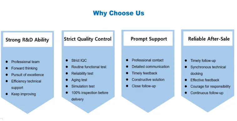 Nossos produtos referem-se estritamente aos padrões internacionais e aos altos padrões da indústria, desde o projeto até a prova e a produção em massa, e estão em conformidade com os padrões internacionais, como CE, FCC, RoHS, ETL etc., para garantir compatibilidade e conformidade no mercado global.