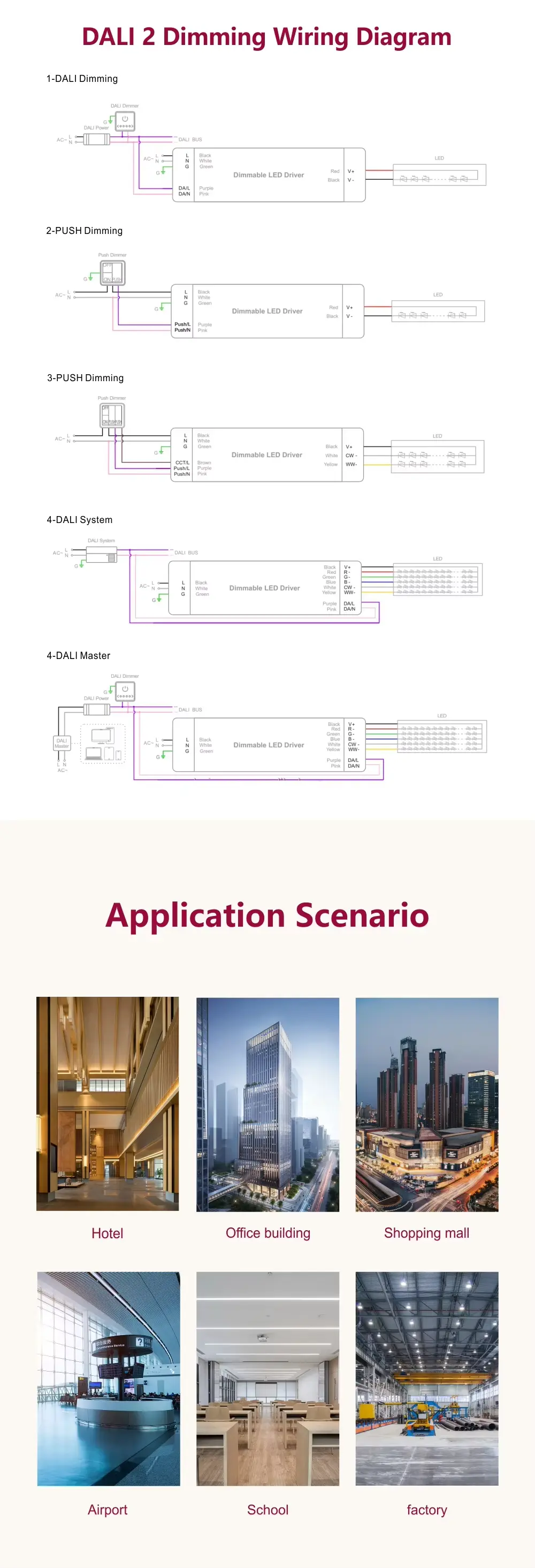 Apresente inteligência, eficiência e controle perfeito aos seus projetos de iluminação com o avançado driver de LED de dimerização CCT de corrente constante DALI da Starwell. Projetado para arquitetos profissionais, designers de iluminação e integradores de sistemas, este driver é a base para a criação de sistemas de iluminação dinâmicos, eficientes em termos energéticos e confiáveis em aplicações comerciais, de varejo, hotelaria e arquitetura.