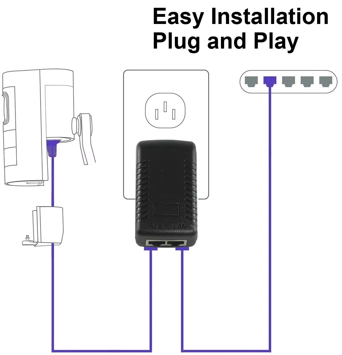 · Plug and Play: não é necessária nenhuma configuração. Basta conectar o cabo LAN do seu switch e o cabo PoE ao seu dispositivo.