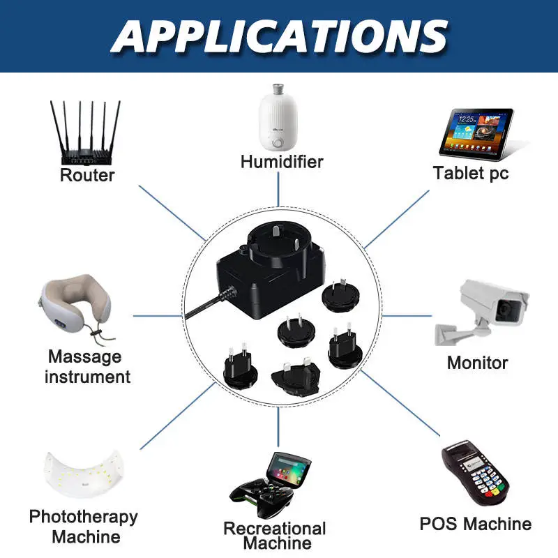 O adaptador de fonte de alimentação de plugue intercambiável de alta qualidade Starwell é um dispositivo versátil e portátil projetado para converter eletricidade CA (corrente alternada) de uma tomada de parede em energia CC (corrente contínua) estável e de baixa tensão exigida por uma ampla gama de dispositivos eletrônicos. Sua característica definidora é um conjunto de plugues removíveis e intercambiáveis (geralmente chamados de "plugues CA" ou "lâminas de entrada") que estão em conformidade com vários padrões internacionais de soquete.