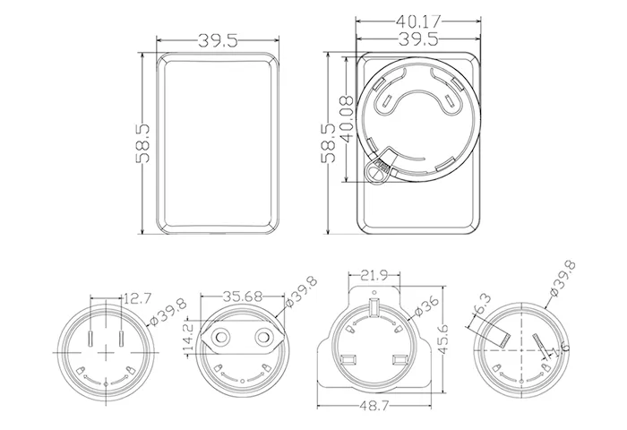 Dimensão do adaptador de fonte de alimentação de plugue intercambiável 12V 24V (mm):