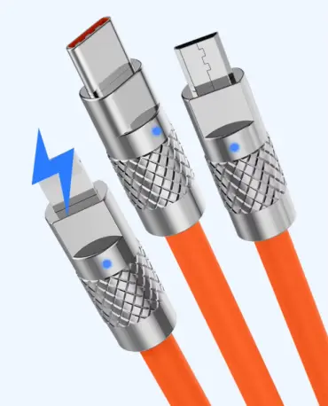 O cabo vibrante e de alto desempenho combina design elegante com funcionalidade robusta, com carregamento rápido e sincronização de dados para todos os dispositivos.